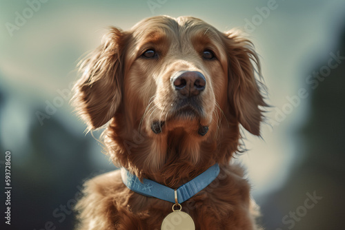 A dog proudly wearing a medal after completing an obedience course, German Shepard, Generative AI