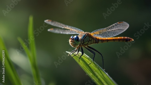 dragonfly, insect, nature, wing, green, grass, blade, closeup, macro, wildlife, animal, summer, garden, fauna, meadow, field, beauty, delicate, fragile, colourful, vibrant, bright, detail, pattern, texture, light, sun, sunlight, shadow, bokeh, blur, background, photo