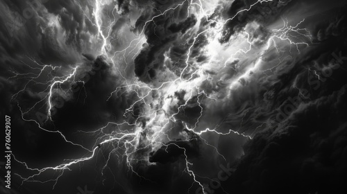 A dramatic black and white photo of a lightning storm. Perfect for weather or natural disaster concepts
