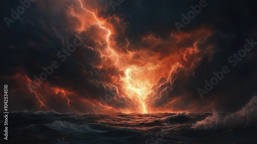 storm, ocean, sky, lightning, fire, mystical, calmness, thunder, intense, surreal, force, illumination, element, wave, seascape, atmosphere, glow, dramatic, radiant, vibrant, stunning, weather, emotion, horizon, power, eerie, rage, life events, scene, chaos, captivating, energy, depth, optical, phenomena, breathtaking, brightness, turbulence, cloud, art, sunset, dark, colourful, beauty, nature, natural, landscape