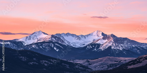 dramatic, mountain, range, twilight, jagged, peak, snow, dusted, slope, glowing, pink, orange, sky, majestic, setting, feel, powerful, timeless