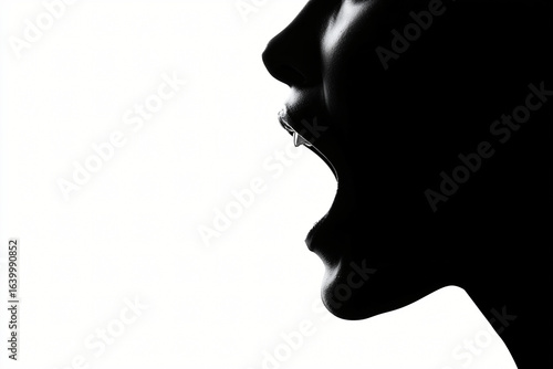 profile, emotion, silhouette, screaming, portrait, anger, expression, shouting, rage, face, cry, drama, darkness, fear, stress, frustration, upset, anguish, distress, yelling, shadow, contrast, dramatic, black-and-white, intense, dark, strong, loud, emotional, person, mouth, open, isolated, half face, angry, reaction, human, vocal, voice