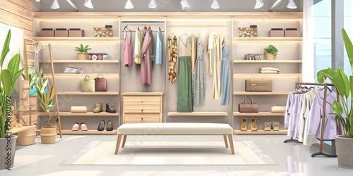 A dressing room in a fashion retail store with seasonal collections and trendy accessories