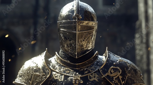 A dynamic 3D render of a medieval knight in armor, featuring detailed textures and realistic movement.
