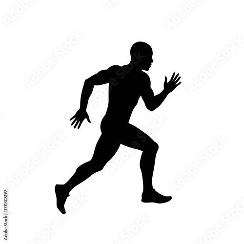A dynamic black silhouette of a male athlete in full stride, symbolizing speed, fitness, and determination against a clean white background.