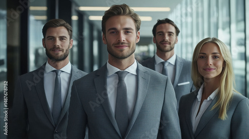 A dynamic group works together, reflecting harmony, expertise, and professionalism in a sophisticated workplace.