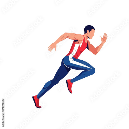 athlete, sprint, runner, dynamic, determination, man, male, person, human, figure, running, dash, speed, motion, fast, quick, active, movement, power, energy, strong, agile, training, exercise, physical exercise, fitness, performance, competition, race, sport, athletic, track, uniform, activewear, apparel, clothing, red, blue, white, shoe, gear, success, achievement, goal, effort, sharpened, health, lifestyle, vigour