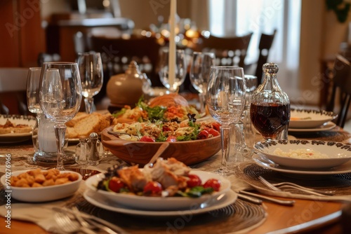 A family dining table set for a special occasion, with delicious food, laughter, and a sense of togetherness