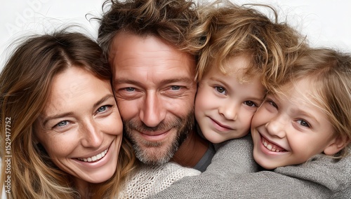 A family poses together and smiles for the camera