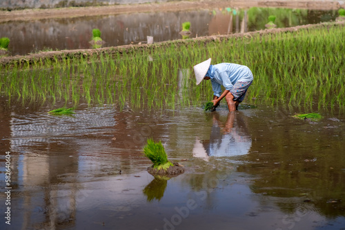 nasi, air, bambus, japan, vietnam, philippines, indonesian, indonesia, asian, asia, person, fertilizer, tropical, system, irrigation, agriculture, cap, paddy, rice, field, farm, farmer, female, woman, plant, food, season, water, green