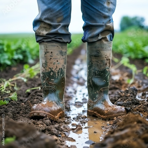 farmer, wear, muddy, boot, racked, field, jean, blue, shirt, look, cake, root, bed, plough, nature, wild plant, rubber, land, seed, business, wet, rural, pest, labor