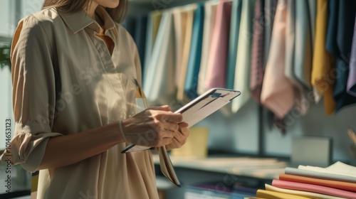 fashion, designer, fabric, sample, tablet, textile, colourful, studio, creativity, assessment, design, garment, workspace, innovation, trendy, modern, artistic, pattern, style, material, chic, sharpened, consultation, choosing, inspection, workshop, apparel, idea, inspiration, selection, clothes, hue, light, professional, arrangement, texture, elegance, organised, process, planning, refinement, aesthetic, decision
