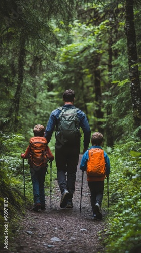 father, children, hiking, forest, nature, trail, adventure, family, outdoors, lush, green, walking, stick, backpack, exploration, bonding, scenic, path, tree, recreation, memory, day, trip, fresh, air, exercise, health, summer, weekend, fun, life events, journey, togetherness, wildlife, backpacking, stroll, pathway, calmness, route, children, fatherhood, companionship, natural, beauty, physical, activity, bright, colours
