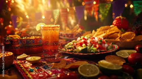 A feast of vibrant cuisine with Mexican drinks and appetizers.