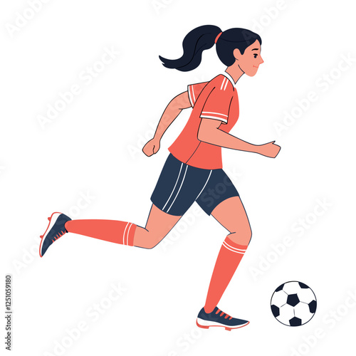 A female soccer player running with a soccer ball vector illustration