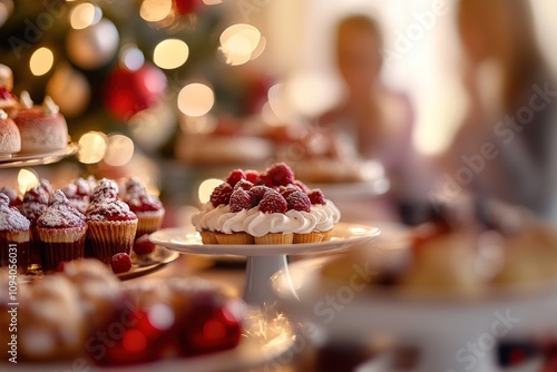 dessert, cupcake, tart, raspberry, cream, sweet, celebration, festive, holiday, treat, table, party, decor, bokeh, blurred, background, joy, gathering, family, friends, sugar, pastry, delicious, indulgence, seasonal, decoration, colours, warmth, favor, baking, presentation, catering, event, occasion, happiness, favor, homemade, receipe, ingredient, serving, variety, epicure, enjoyment, visual, aesthetic, inviting, atmosphere, culinary