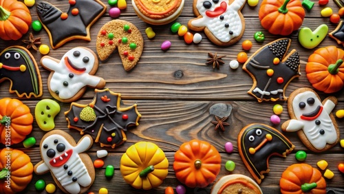 halloween, gingerbread, cookie, candy, pumpkin, rustic, wood, homemade, sweet, treat, festive, holiday, autumn, decoration, celebration, skittish, whimsical, fun, fall, delicious, sugary, colourful, seasonal, baking
