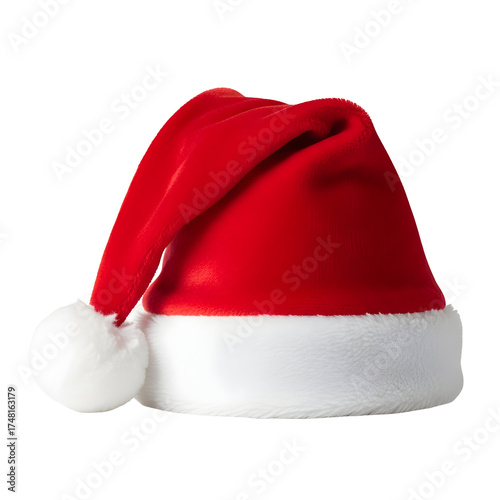 A festive red and white Santa hat, perfect for holiday celebrations and Christmas events