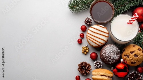 A festive table filled with desserts, drinks, and decorations.