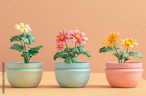 A few colorful 3D flower pots