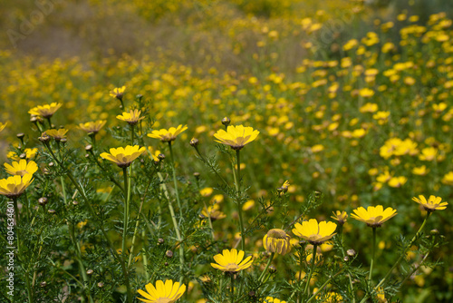 field, meadow, yellow, wild, flower, wildflower, wildflower, daisy, sunny, day, huge, spring, winter, seasonal, chrysanthemum, mediterranean, common, garland, greener, edible, leafy, herb, annual, plant, floret, flora, nature, natural, flower head, healthy, mineral, vitamin, antioxidant, bloom, blooming, blossom, botany, botanic, country, flower, beauty, beautiful