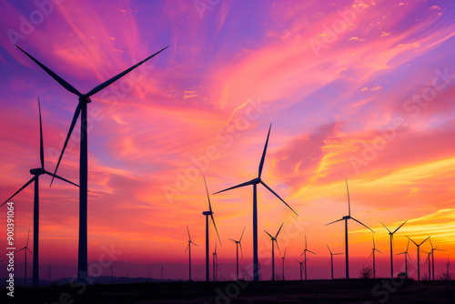 wind, turbine, sunset, sky, cloud, energy, renewable, power, nature, landscape, horizon, dusk, evening, silhouette, field, farm, blade, tower, clean, sustainable, environment, climate, change, technology, alternative, future, bright, colourful, red, orange, purple, pink, yellow, gold, beautiful, scenic, majestic, awe, inspiring, hope, progress, vibrant, tranquil, peaceful, serene, dreamy, aethereal, art
