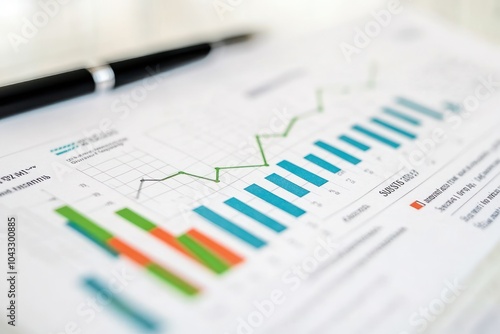 A financial report showcasing graphs and bar charts for data analysis.