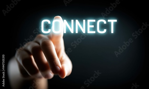 A finger presses the illuminated word connect on a dark, digital display, ready to engage.