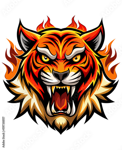 A fire design with angry tiger head mascot clipart generative ai