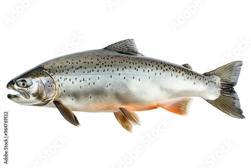 A fish suspended in the air, no water or surrounding environment visible