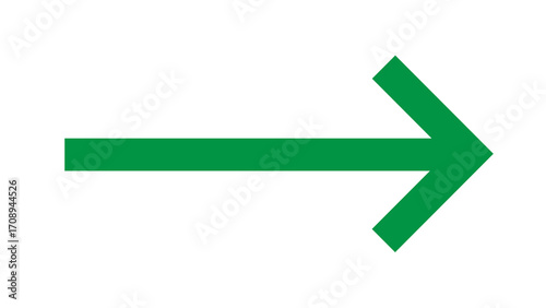 A flat and isolated graphic rendering of a simple, bold, green arrow pointing right.