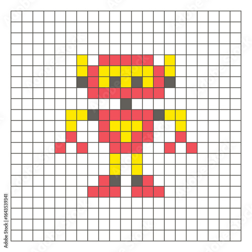 pixel, art, robot, machine, cyborg, tech, android, future, science fiction, gear, mechanical, toy, grid, colouring, pixelated, mosaic, preschool, education, learning, children, activity, printable, cross-stitch, embroidery, bead, colourful, clip art, puzzle, geometric, graph, crochet, square, quilt, needlepoint, brain, logic, mathematic, handcraft, children, icon, illustration, retro, design, flat, project, block