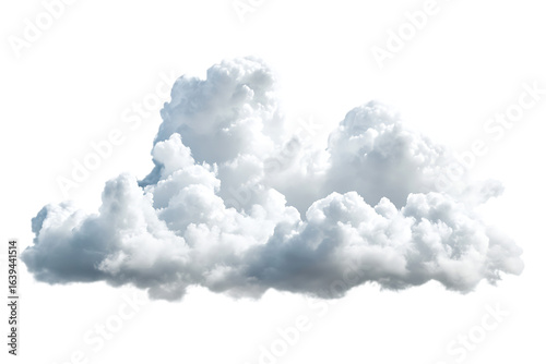 A fluffy white cumulus cloud isolated on a transparent background, representing weather, nature, and the sky on a bright summer day