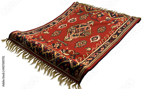 A flying carpet with an oriental pattern on it, transparent background PNG file, high resolution, PNG format