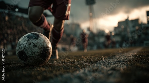 soccer, football, player, sport, action, stadium, game, sport, motion, kick, ball, goal, team, competition, athletic, match, teamwork, field, grass, brown, dark, city, sharpened, blur, evening