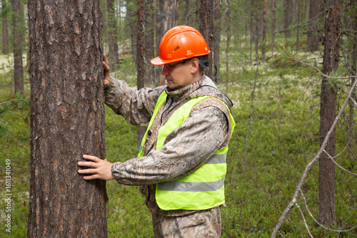 engineer, forest, forestry, nature, men at work, green, person, tree, work, male, lumberjack, technology, forester, people, 1, man, profession, industry, control, hand, helmet, environment, ecologist, professional, equipment
