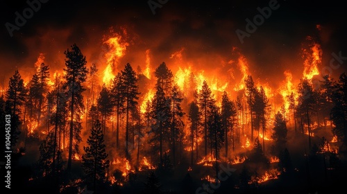 forest, fire, raging, wooded, area, tree, smoke, billowing, intense, chaotic, flames, sky, spreading, burn, nature, disaster, wildfire, heat, hot, wild, danger, destruction, environment, emergency, night, red, mountain, orange, ecology, dry, pollution, problem, damage, climate, grass, summer, brush, destroy, yellow, blaze, outdoors, pine, landscape, change, complex, smoky, line, county