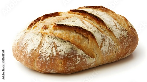 A Fresh Artisanal Bread Loaf with Crusty Texture Isolated on White Background