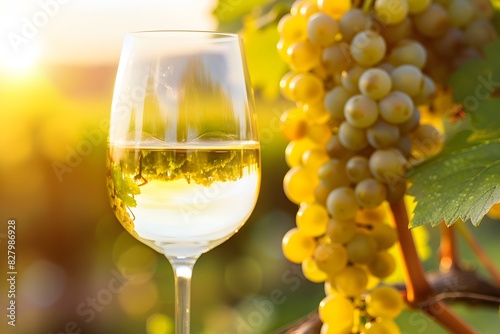 A fresh chilled glass of ice wine overlooking a Canadian vineyard during a Summer sunset
