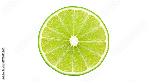 A fresh green lime slice isolated on a transparent background, showcasing vibrant citrus fruit pulp