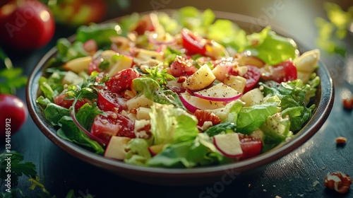 A fresh salad with mixed greens and vegetables.