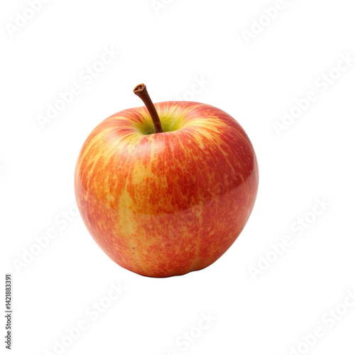 A fresh, vibrant red and yellow apple with a small stem, perfect for any fruit collection or display.