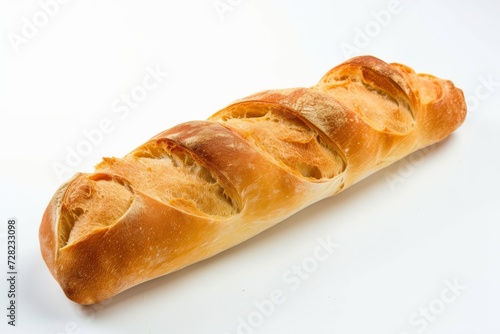 A freshly baked baguette isolated on white background