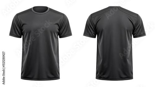 shirt, grey, clothing, isolated, apparel, fashion, activewear, short sleeve, black background, front view, backview, studio shot, t-shirt, front, back, view