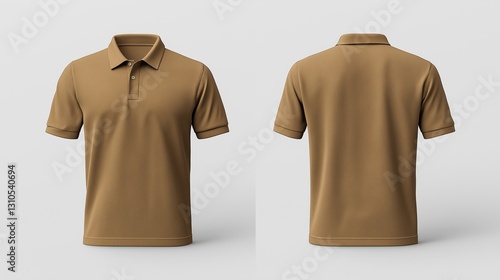 A front and back view of a plain Mocha mousse polo shirts, displayed front and back