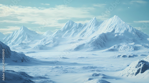 glacé, tundra, snow-covered, mountain, icy, landscape, glowing, softly, northern, light, snowy, illustration