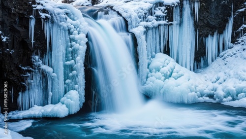 waterfall, glacé, ice, snow, winter, cold, frosty, icy, serene, peaceful, natural, landscape, mountain, rock, cliff, icicle, snow-covered, chill, frost, glacier, glacial, snowbank, drift, powder, crystalline, aquamarine, teal, blue, misty, veiled, rugged, rocky, scenery, outdoors, wilderness, remote, snowdrift, frosted