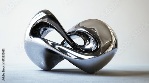A futuristic 3D-rendered abstract sculpture with smooth metallic surfaces.