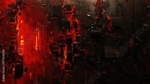 A futuristic circuit board design with nanoscale glowing components, symbolizing advanced technology, with open space for copy.