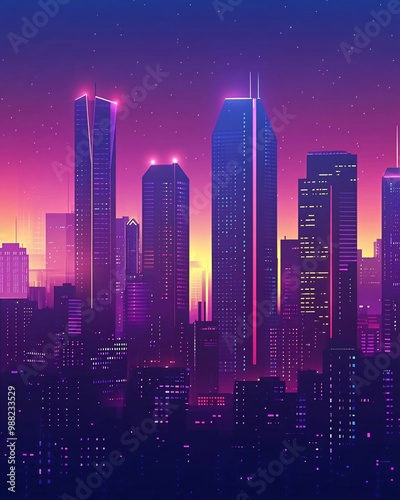 city, skyline, futuristic, neon, night, city landscape, urban, modern, building, architecture, skyscraper, light, glowing, abstract, design, background, illustration, digital, technology, digital artwork, graphic, graphic design, retro, vintage, colourful, vibrant, dark, purple, pink, blue, night sky, star, metropolis, city landscape, horizon, twilight, evening, dusk, town, illumination, glow, light, city landscape